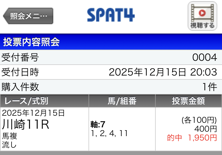 しかし、レースの頭数は12頭、複勝だとつらいね。